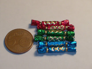 Fiz uns "christmas crackers" de fimo papel , prata colorido e stickers isto era para guarda para a minha futura casa de bonecas mas vai ser utilizado para outra coisa.